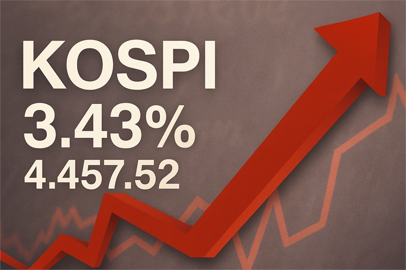 [이슈라인=장사라 기자] 5일 국내 증시는 대형주 중심의 강한 매수세에 힘입어 일제히 상승 마감했다. 코스피 지수는 전 거래일 대비 3.43% 오른 4,457.52에 거래를 마치며 단숨에 4,400선을 회복했다. 이날 지수 급등은 시가총액 1위인 삼성전자가 주도했다. 삼성전자는 하루 만에 9,600원(7.47%) 급등한 13만8,100원에 장을 마감하며 시장을 견인했다. 외국인과 기관의 동반 매수세가 유입되면서 지수 전반이 끌어올려졌다는 평가다.