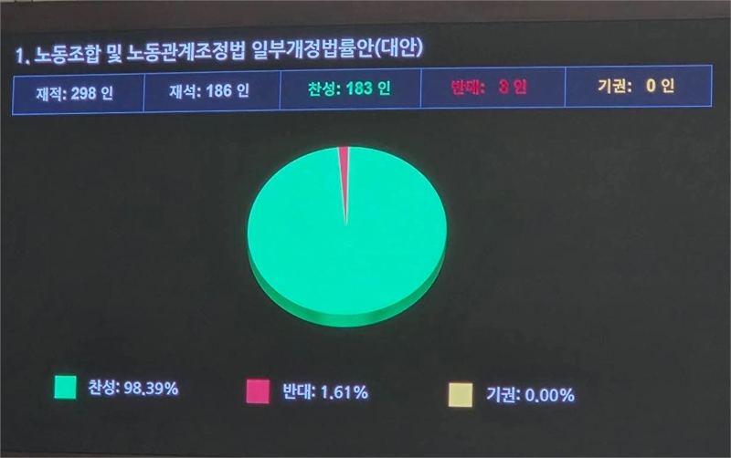 노동조합법 2·3조 개정안이 8월 24일 여당 주도로 국회 본회의를 통과했다.